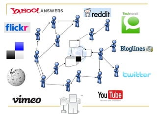 The document discusses how social browsing and information filtering works on social media sites like Digg and Flickr. It finds that on Digg, users are more likely to vote for stories submitted by friends and stories that their friends have voted for. On Flickr, users put significant effort into sharing photos with groups, and photos are more likely to receive comments from the uploader's social connections than strangers. Social networks and browsing the activities of connections helps drive promotion and discovery of content on these social media sites.
