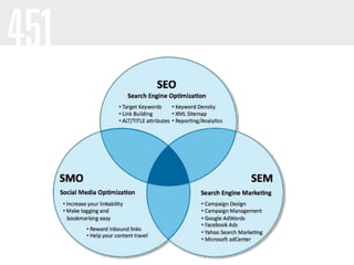 The document discusses the importance of social SEO in enhancing social signals to boost search traffic, highlighting the integration of social media and search engines. It outlines strategies for optimizing keywords, analyzing social ranking factors, and creating a content plan based on current trends. It emphasizes the need for brands to continuously adapt their keyword strategy and leverage social interactions to improve search engine results.