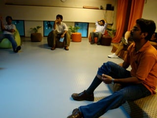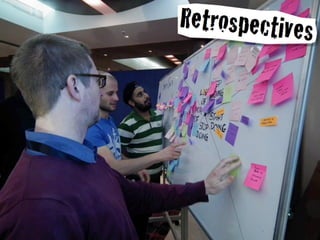 - Specific techniques are described like open space meetings, brown bag lunches, retrospectives, standups, pair programming, and conference sessions.