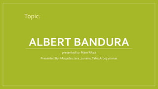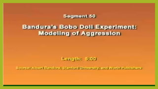 The document discusses Albert Bandura's contributions to psychology, particularly his concepts of self-efficacy and social learning theory, which emphasize the role of observational learning and modeling in shaping behavior. It details Bandura's Bobo doll experiment, which demonstrated how children imitate aggressive and non-aggressive behavior based on observed actions of adults. Additionally, ethical concerns regarding consent and confidentiality in the experiment are highlighted, as well as the significance of social learning theory in contemporary psychology.