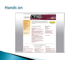 The document is a presentation by Lisa Jeskins on the use of social media in libraries, emphasizing the importance of engagement through platforms like Twitter, Facebook, and blogs. It highlights trends in social media usage, including increased mobile access and the significance of timely updates. The presentation also addresses common fears about social media, urging libraries to adopt these tools for user interaction and information sharing.