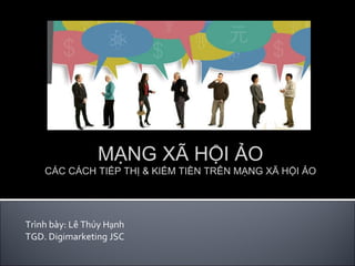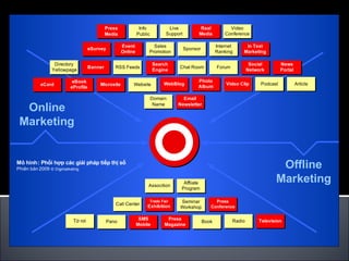 Tài liệu cung cấp cái nhìn tổng quát về tình hình tiếp thị số và mạng xã hội, nhấn mạnh sự phát triển mạnh mẽ của các nền tảng trực tuyến và email trong năm 2009. Nó nêu rõ các cách mà doanh nghiệp có thể xây dựng chiến lược và tham gia vào mạng xã hội để kiếm tiền và tiếp thị hiệu quả. Bên cạnh đó, tài liệu cũng đề cập đến sự cần thiết của việc cá nhân hóa và kết nối trong môi trường trực tuyến ngày nay.