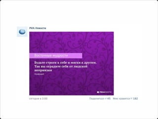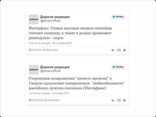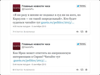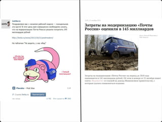Документ обсуждает эволюцию контента в социальных медиа, акцентируя внимание на важности адаптации новостных форматов для привлечения аудитории. Подчеркивается необходимость использовать креативные подходы, такие как вопросы к читателям и ирония, чтобы вызвать интерес и взаимодействие. Также рассматривается влияние конкуренции и медленная реакция аудитории на форматы контента.