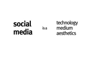 The document discusses the evolution and impact of social media as a communication medium, highlighting its technological progression from early internet to modern platforms like MySpace and LinkedIn. It emphasizes the various aspects of content creation, sharing, and engagement on social media, as well as the significance of building brand identity through social media marketing strategies. Case studies exemplify how relationships and engagement drive success in the social media landscape.