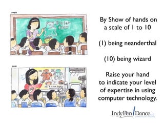 This document discusses strategies for social media marketing. It begins by asking attendees to rate their computer expertise on a scale of 1 to 10. It then asks what people hope to learn about social media marketing. The rest of the document provides tips and insights about social media marketing, including how word of mouth has always been the strongest way to build a brand, and how social media allows word of mouth to happen on a larger scale online. It also discusses how social media marketing is more interactive than traditional "one way" advertising approaches.