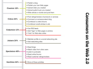 The document discusses the evolution of social media and its impact on modern communication, marketing, and consumer behavior, highlighting the transition from traditional media to web 2.0 technologies. It emphasizes the growing importance of social computing, user-generated content, and the need for businesses to adapt to the preferences of younger generations for connectivity and self-expression. It also addresses the challenges and opportunities faced by creators in an increasingly competitive digital landscape.