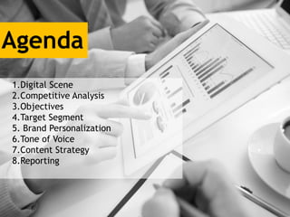 تتناول وثيقة استراتيجية وسائل التواصل الاجتماعي في مصر خطوات الآجندا بداية من التحليل الرقمي والمنافسين، تحديد الأهداف والفئة المستهدفة، إلى استراتيجيات المحتوى والتقارير. تشمل النقاط الرئيسية تقييم أداء الصفحات المنافسة، وتعريف مجموعة الأهداف الذكية المطلوبة، وتحديد خصائص الموقع الاجتماعي الخاص بالعلامة التجارية. في النهاية، يتم التركيز على متابعة الأداء واستخدام التقارير لتحسين الاستراتيجية.