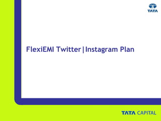 This document outlines social media plans for FlexiEMI on Twitter and Instagram. The objective is to create awareness of FlexiEMI's product features and benefits to drive traffic to their landing page. On Twitter, they will run a #FlexiGivesMe contest asking people to share content about their dreams and how FlexiEMI can help, targeting different demographics and aspirations. On Instagram, they will run a #ThatsFlexibility contest asking people to share flexibility selfies. Influencers will be used to promote different FlexiEMI features to different target audiences.