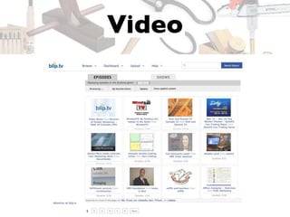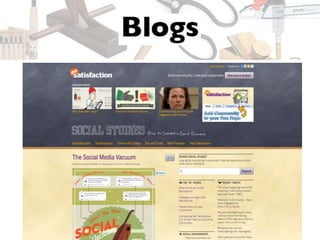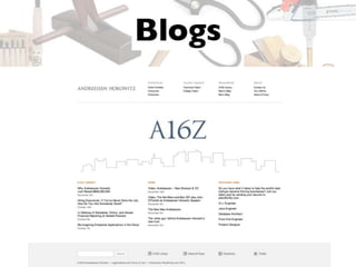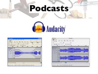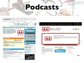 The document contains a list of web tools, platforms, and resources related to social media, blogging, and podcasting. It includes various URLs, examples of content creators, and social media handles for further contact. Additionally, it provides a contact email for Jeffrey Cohen at Merrell Group.