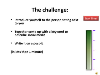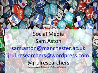The document discusses social media and its impact on researchers. It provides quotes from researchers about both the benefits and drawbacks of social media. It has positively impacted some researchers by allowing them to more quickly find information and build networks. However, others note it can be addicting and take time away from other work. The document also lists different social media tools and strategies for using social media as a researcher.