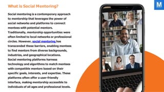 Social mentoring is a modern approach that utilizes social networks to connect mentees with mentors from diverse backgrounds and industries, breaking traditional geographical barriers. It allows for targeted guidance and encourages confidence through mentor support, potentially leading to long-lasting relationships. Effective social mentoring involves choosing the right platform, creating an authentic profile, and actively engaging with mentors.