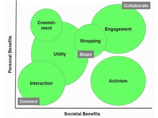 The document discusses the history and growth of social networking. It defines social networking as a social structure made up of individuals and their interdependencies. Some key points:
