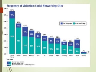 The document is a group presentation on social networking by five students. It defines social networking as a way for people with common interests to interact through chatting, emailing, instant messaging and video chatting. It provides background on the rise of social networking sites from the early 1990s and discusses popular sites like Facebook, WhatsApp, WeChat, Line and Myspace. It also covers personal benefits of social networking and predicts that new opportunities and challenges will arise as social networking continues to increase in pace.