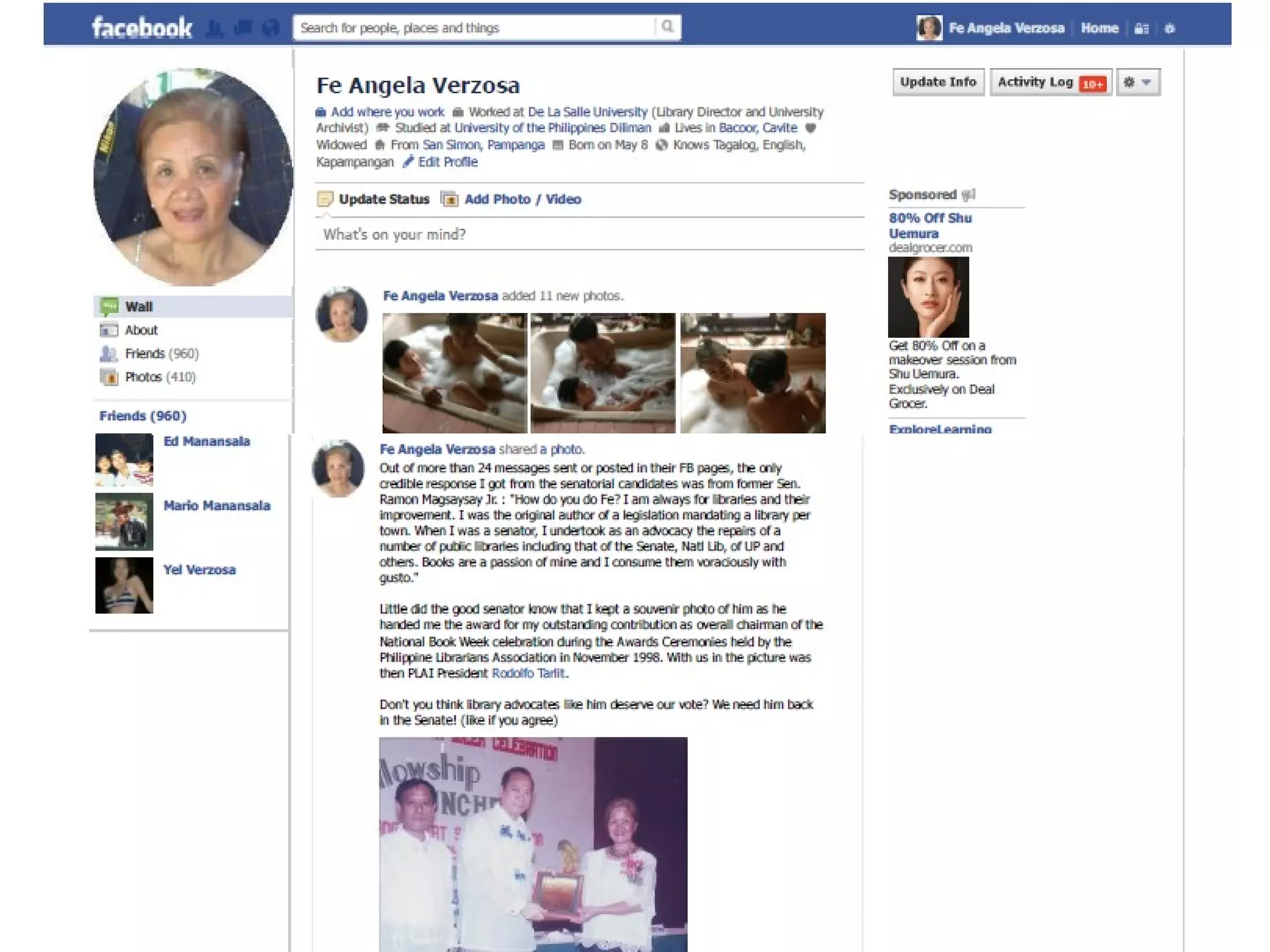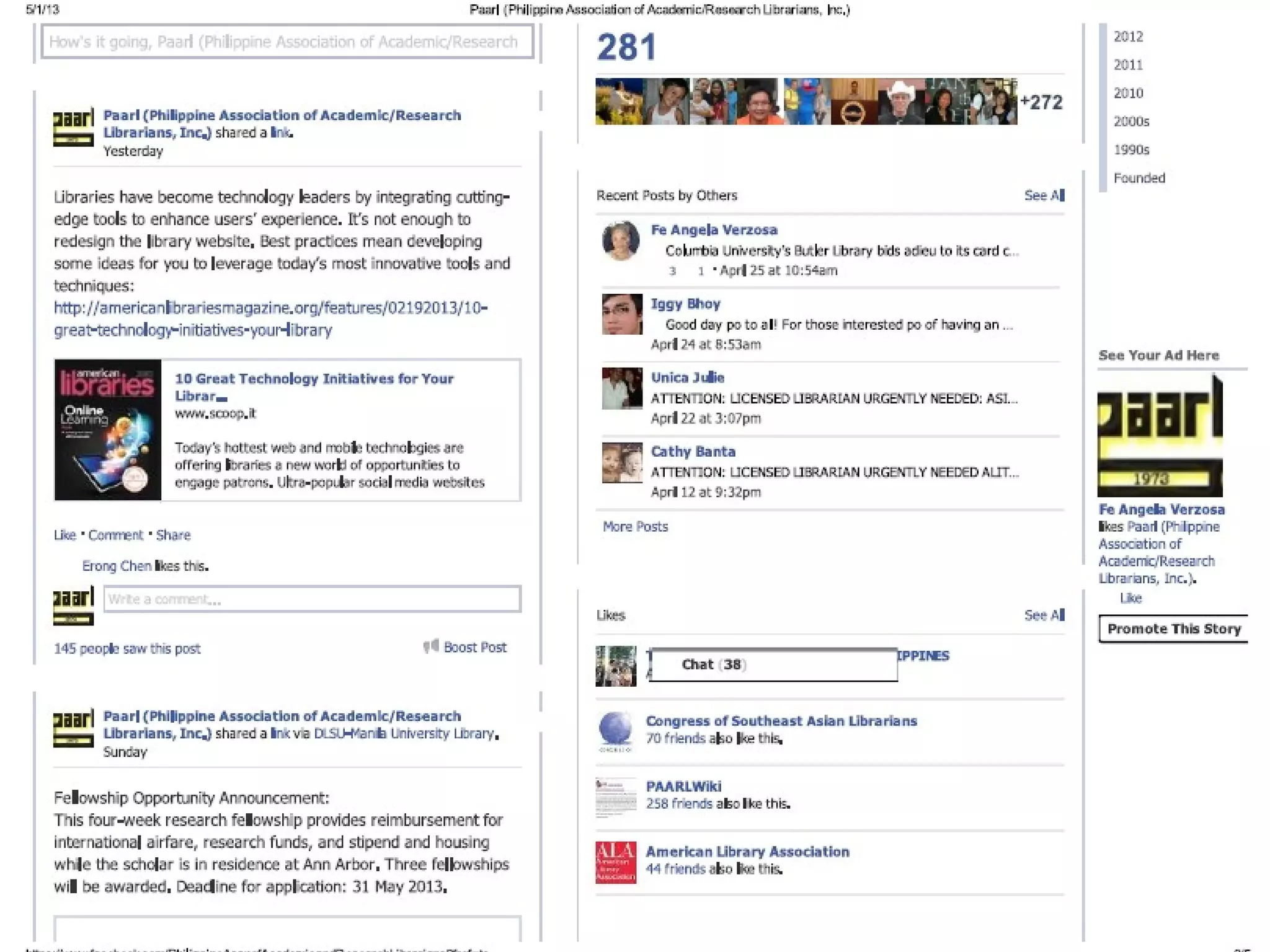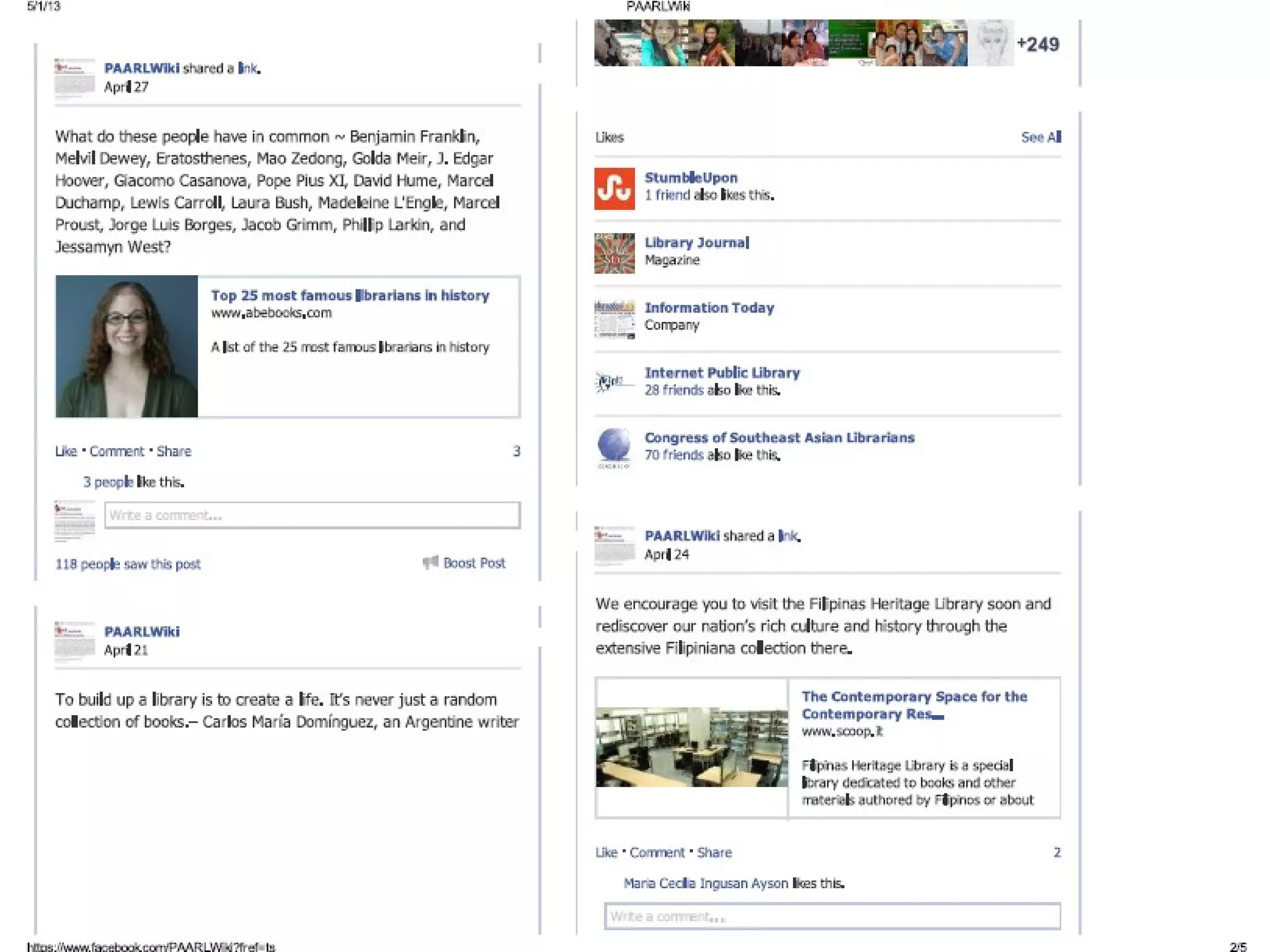 This document discusses social networking and its impact on libraries. It provides an overview of the speaker's extensive involvement with various social media platforms including Facebook pages for libraries, wiki pages, groups, and social sharing sites. Statistics on social media use in the Philippines are presented, establishing it as a world leader in social networking. Potential uses of social media for libraries are explained, such as communication, marketing, and understanding patrons. Skills needed by librarians to engage with social media are covered. Best practices and tips for using different social media platforms safely and effectively in a library setting are also shared.