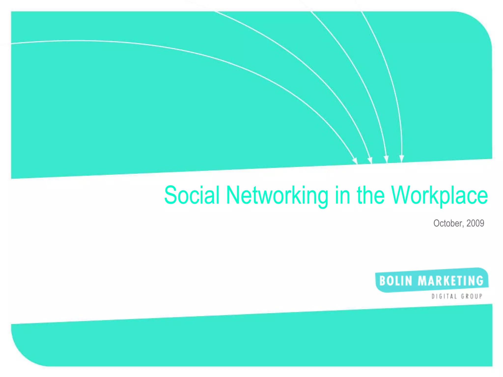 The document discusses the increasing acceptance of social networking in the workplace, noting 69% of businesses now allow social media use. It highlights the benefits, including improved communication and productivity, while also addressing concerns about loss of productivity, security risks, and inappropriate content. To mitigate these risks, companies are encouraged to establish guidelines and policies for employee social media use.