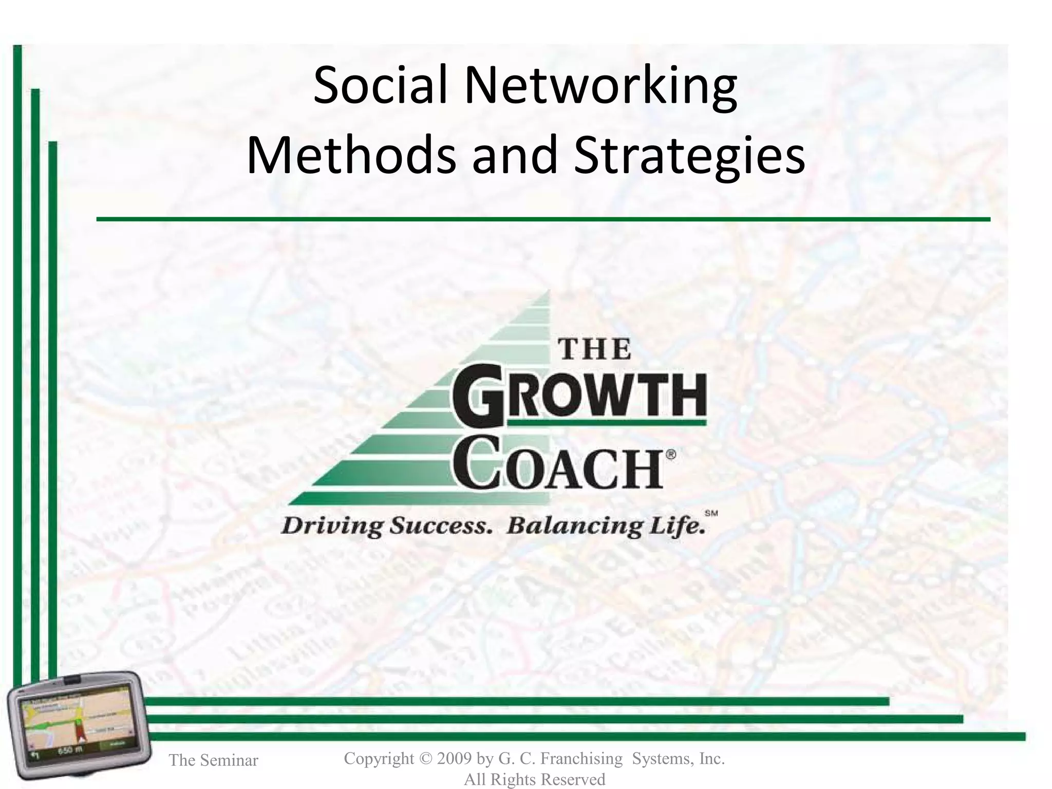 The seminar discusses the importance of social networking, detailing why businesses should utilize social media platforms due to their expansive user base. It covers five suggested uses for social media, popular platforms such as Facebook, Twitter, and LinkedIn, and offers tips on maximizing engagement and establishing authority online. The presentation encourages participants to create a strategic approach to social networking and offers resources for further learning.
