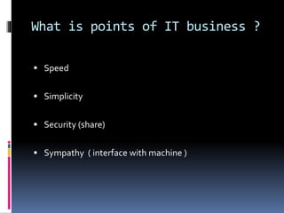 What is pointsof IT business ?