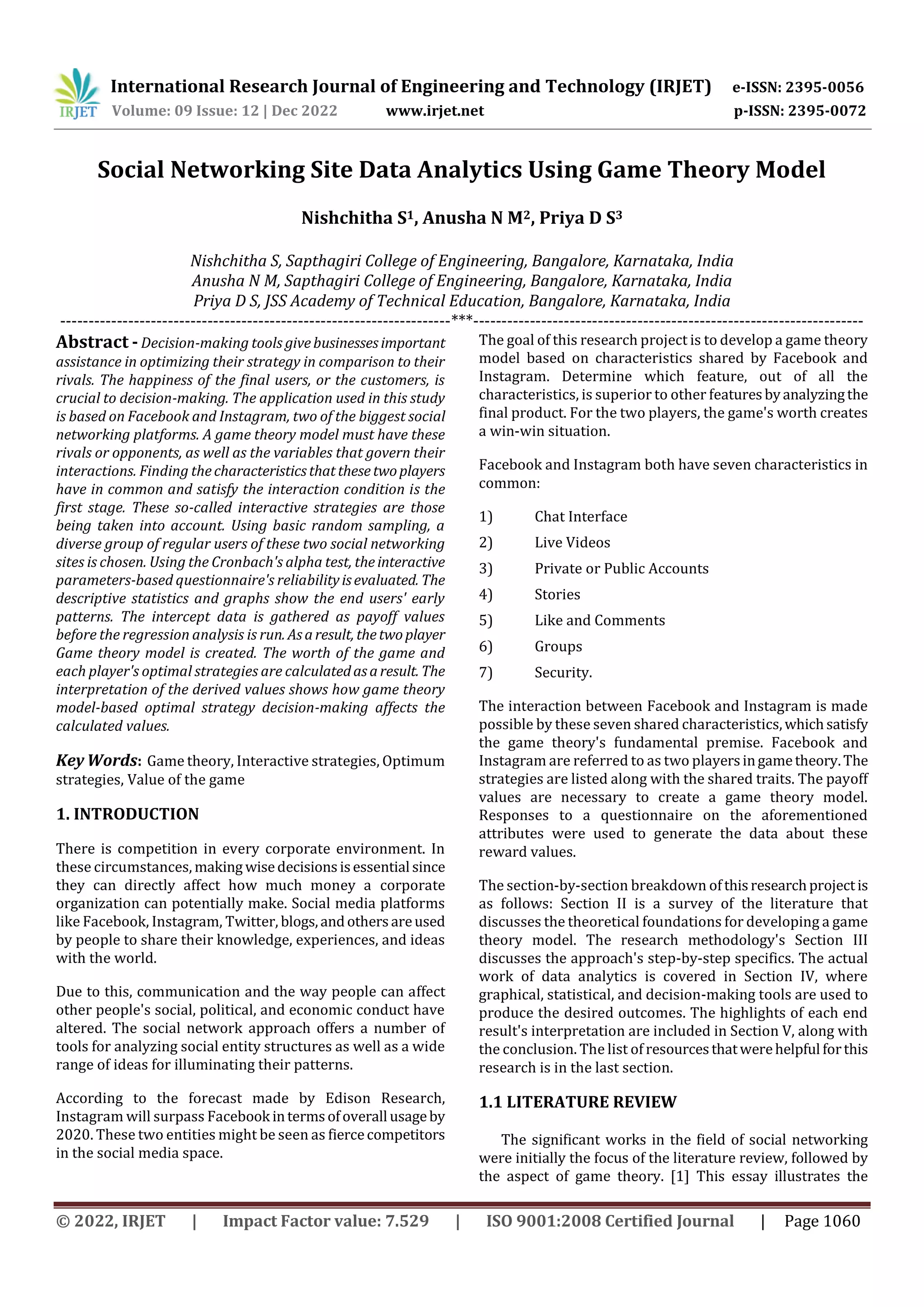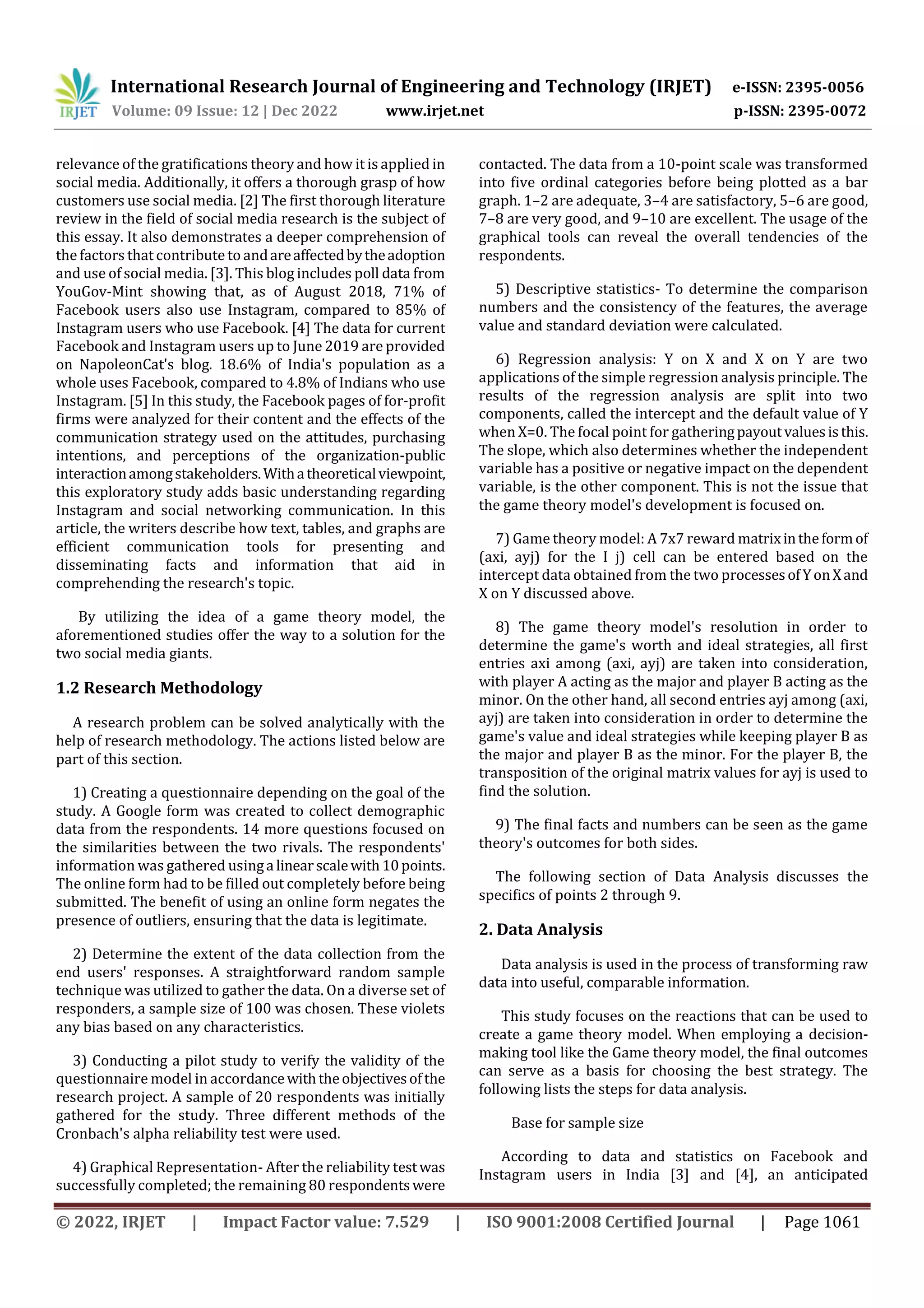 This document presents a study that uses game theory to analyze data from social networking sites Facebook and Instagram.