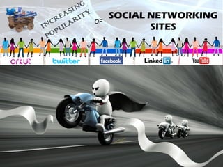 The document outlines the evolution and impact of various social networking sites, including Facebook, Twitter, and LinkedIn, detailing their founding, growth, and features. It highlights the rise in popularity of these platforms, their commercial use for advertising, and the risks involved, such as phishing, cyberstalking, and identity theft. It also offers precautions for users to safeguard their information while engaging on these sites.