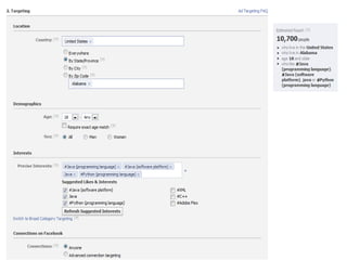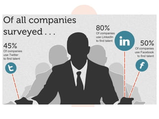 The document discusses strategies for using various social media platforms for recruiting purposes. It outlines goals around driving traffic, engagement, and membership across LinkedIn, Facebook, Twitter, Google+, and YouTube. Benchmark metrics and tracking are suggested to measure success. An integrated approach across multiple platforms is advocated to identify passive candidates and source talent through communities.