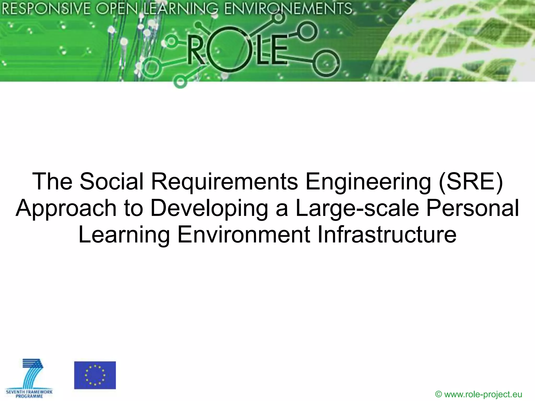 The document discusses using a social requirements engineering approach to develop a large-scale personal learning environment infrastructure. It proposes using social network analysis and user rankings to prioritize requirements stated by multiple heterogeneous communities with different interests and technical expertise. The approach aims to provide developers with a compact overview of learning needs and support continuous collaboration between stakeholders.
