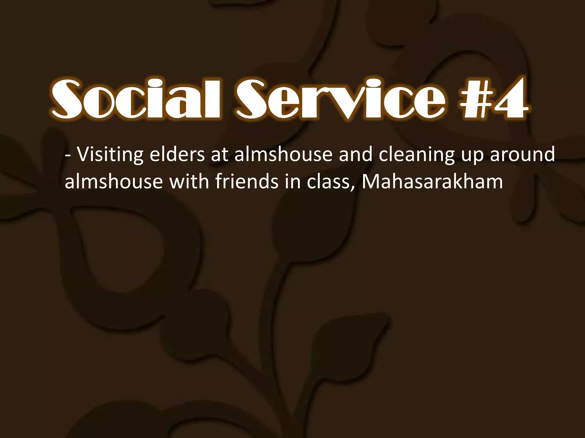 We visited elders at an almshouse in Mahasarakham and helped clean up around the facility with friends from our class. We spent time with the elderly residents and tidied the grounds in a service project.