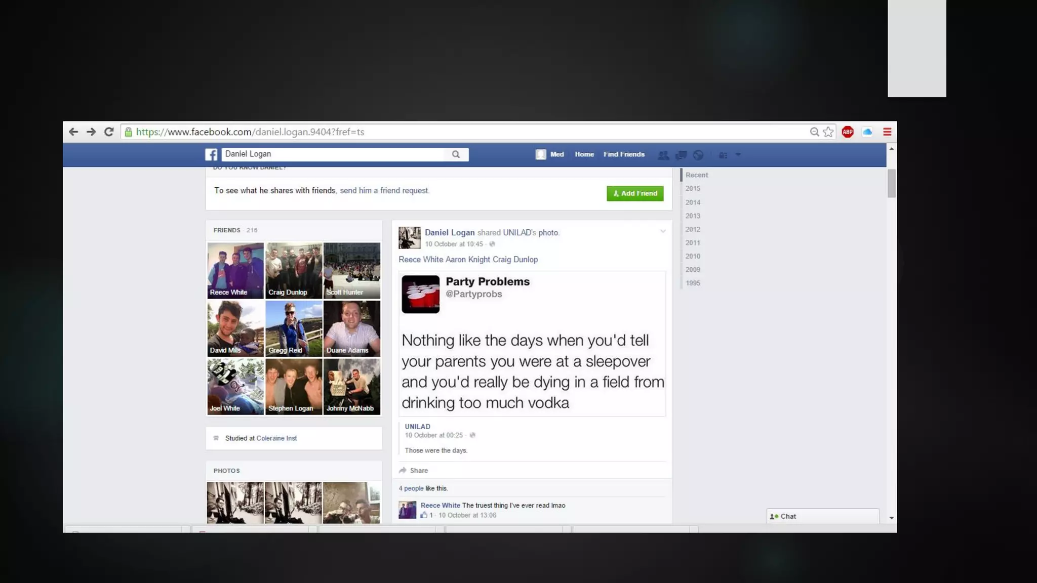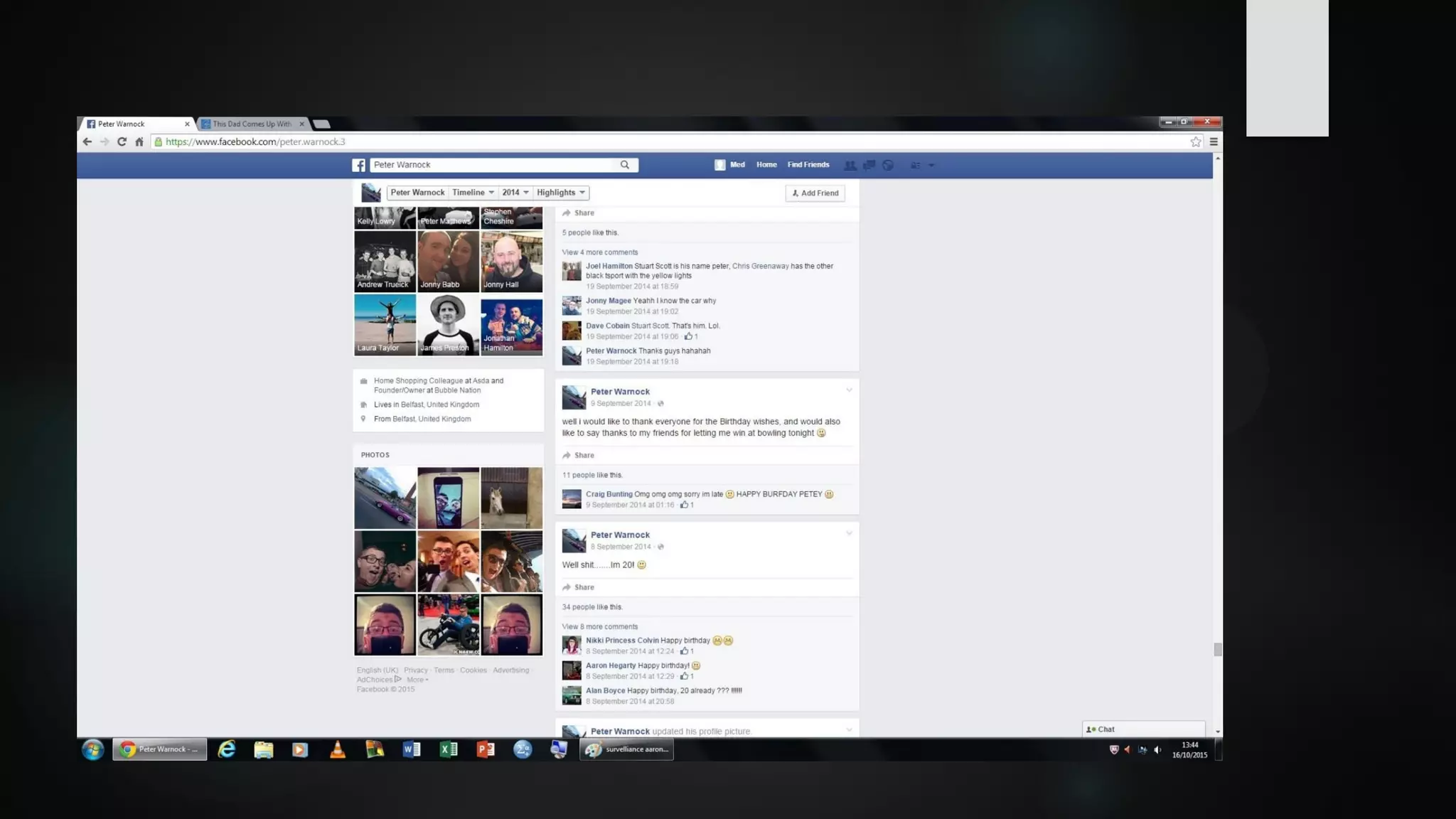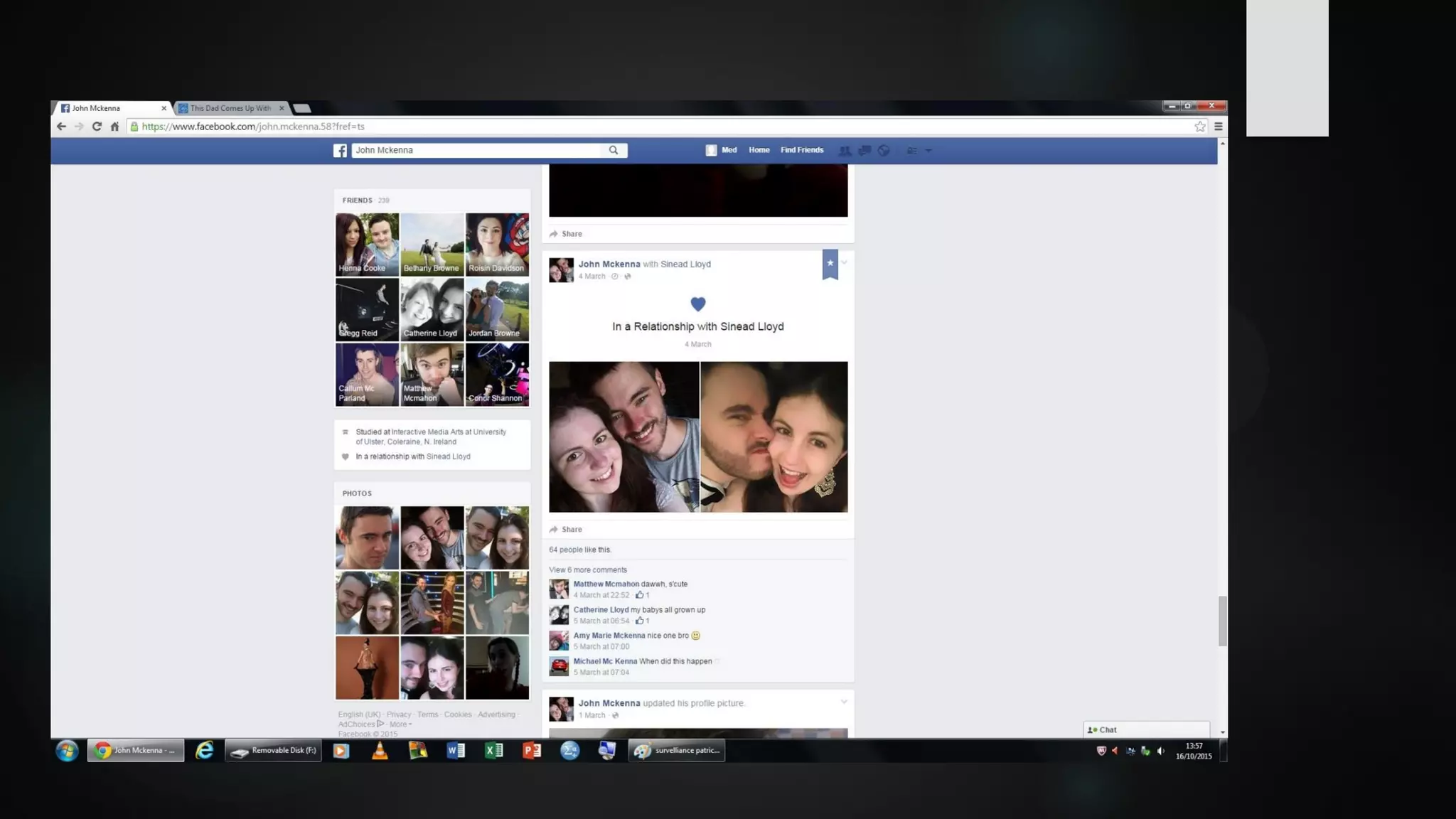 Social media enables constant surveillance of users by friends and others with access to their profiles and information. Recent research shows that people often do not adjust privacy settings on social media sites like Facebook even when given opportunities. Law enforcement also uses information publicly available on social media to track down suspects, as one example showed where a suspect was located after posting his location on Facebook. Overall social media allows extensive surveillance of users by both private individuals and companies collecting personal data.