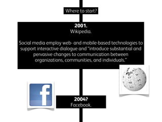 This document discusses the history and evolution of social media and information sharing from ancient times to the present. It traces the development of writing systems, printing, electricity, telecommunications, and the internet which have progressively lowered the costs and increased the speed of sharing ideas. Recent technological advances like smartphones, social networks, and wireless sensor networks are bringing about a new era where physical and digital worlds converge to enable new forms of collaboration and problem solving at a global scale.