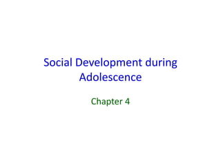 This document discusses social development during adolescence, including rites of passage, social roles, personality development, temperament, and moral development. It covers formal and informal rites of passage, different social roles adolescents take on, psychoanalytic and trait theories of personality, how temperament is influenced by both genetics and environment, and theories of moral development from Piaget, Kohlberg, Gilligan, and social learning perspectives.