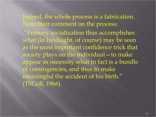 Socialization occurs through complex processes of conditioning, learning, and social interaction from infancy through adulthood. Key theorists discussed in the document include: