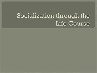 The document discusses the different life stages from childhood through older adulthood. It notes that as individuals pass through each stage, their behaviors and attitudes change to reflect social expectations. Additionally, one's socioeconomic status influences their life course. The document then provides details on the expectations and challenges specific to certain age groups, such as children, teenagers, young adults, midlife adults, and older adults.