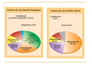 O nivel devida da clase obreira ¾ partes dos ingresos dunha familia obreira gastábanse en alimentación e vivenda. Unha enfermidade ou o despido os deixaban na miseria total O tempo para o ocio e a cultura era practicamente inexistente. As posibilidades de formación eran escasas (tampouco había onde estudiar: non se consideraba necesario que tivesen unha formación máis aló do necesario para traballar) e polo tanto a promoción social moi difícil. Nas cidades vanse formando barrios obreiros de crecemento rápido, mal urbanizados, densamente poboados, sen as condición hixiénicas necesarias.