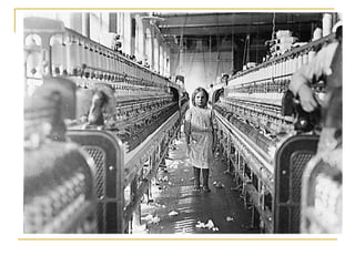 O NACEMENTO DOPROLETARIADO Formado principalmente polo obreiros da industria, dos talleres artesanais e ós empregados do sector terciario e empregados domésticos. O proletariado industrial aumentou moito dende mediados de século Condicións traballo moi duras Xornadas laborais longas (12-14 horas) seis días á semana Salarios baixos que subían por debaixo do incremento dos prezos. Traballo nas fábricas en malas condicións: sen seguros de enfermidade nunhas fábricas insalubres, con escasa seguridade, sen imdenizacións en caso de acidente Traballo infantil. Os nenos deben traballr dende os 8 ou 9 anos