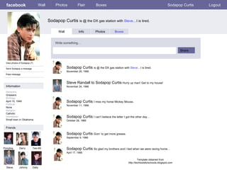 Sodapop Curtis is a greaser from a small town in Oklahoma who works at a gas station. Some of his interests include horses, rumbles, and taking care of horses. He mentions being tired at the gas station with his friend Steve and missing his horse Mickey Mouse.