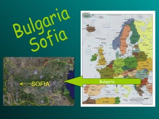 Sofia, the capital city of Bulgaria, is situated in western Bulgaria at the northern foot of Vitosha Mountain. It has a population of over 1 million people and is the country's political, economic, and cultural center. Some of its most prominent landmarks include the Alexander Nevsky Cathedral and the Boyana Church, known for its medieval frescoes.