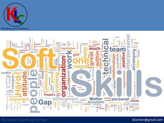 The document promotes the importance of both technical and soft skills for professional success, emphasizing that soft skills like communication, time management, and teamwork are increasingly in demand. It highlights the role of soft skills in enhancing human values and workplace etiquette, and suggests that a combination of both skill sets is necessary to stand out in one's profession. For training workshops, the document encourages contacting klcenter@gmail.com.