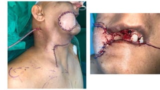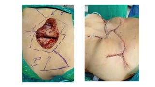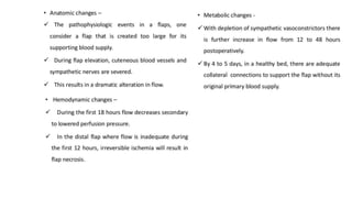 The document outlines various soft tissue flaps used in reconstructive surgery, detailing types based on location, blood supply, and content, along with examples of commonly used flaps like the pectoralis major myocutaneous flap, deltopectoral flap, and radial forearm flap. It describes specific techniques for harvesting these flaps, their advantages and disadvantages, and their applications in different surgical contexts, particularly within head and neck reconstruction. Additionally, classifications such as Mathes and Nahai’s are mentioned to aid in the selection of appropriate flaps for specific wound types.