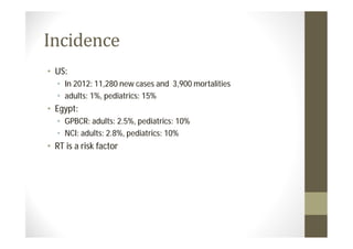 - Incidence rates in the US and Egypt. Radiation therapy is a risk factor.
