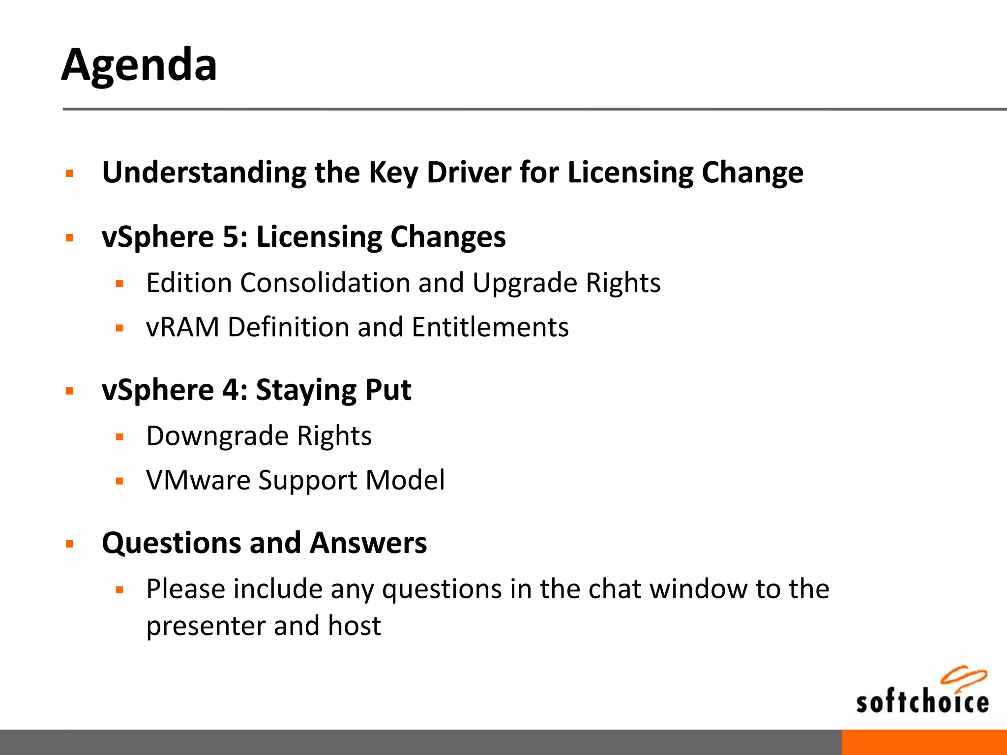 The document outlines the licensing changes introduced with VMware vSphere 5, focusing on the concept of vRAM entitlements and how they affect virtualization resource allocation. It explains the implications for existing users of vSphere 4 regarding upgrade paths and compliance, and addresses frequently asked questions about licensing practices. The document emphasizes the importance of understanding vRAM pool limits and compliance requirements for virtualized environments.