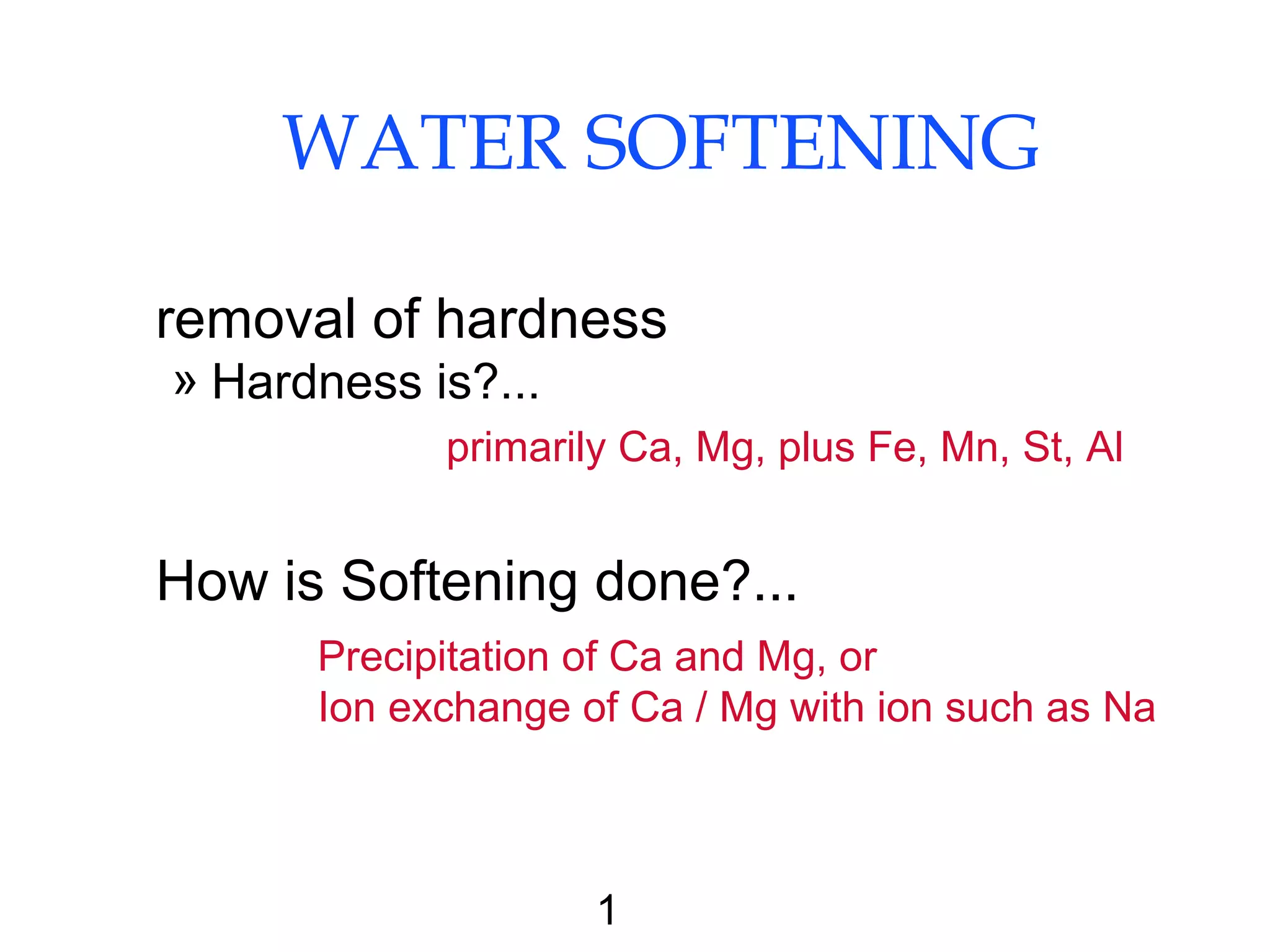 Water softening removes hardness primarily caused by calcium and magnesium ions through precipitation or ion exchange processes. Hardness above 150 mg/L as CaCO3 can cause issues like increased soap consumption and scaling. Hardness is formed as carbon dioxide interacts with limestone and other minerals in soil and groundwater. There are two types of hardness - carbonate (temporary) and non-carbonate (permanent) - which are removed through different softening methods. Lime-soda ash softening uses the addition of lime and soda ash to precipitate calcium and magnesium out of solution, leaving softer water. This process can typically reduce hardness to 80-100 mg/L as CaCO3.