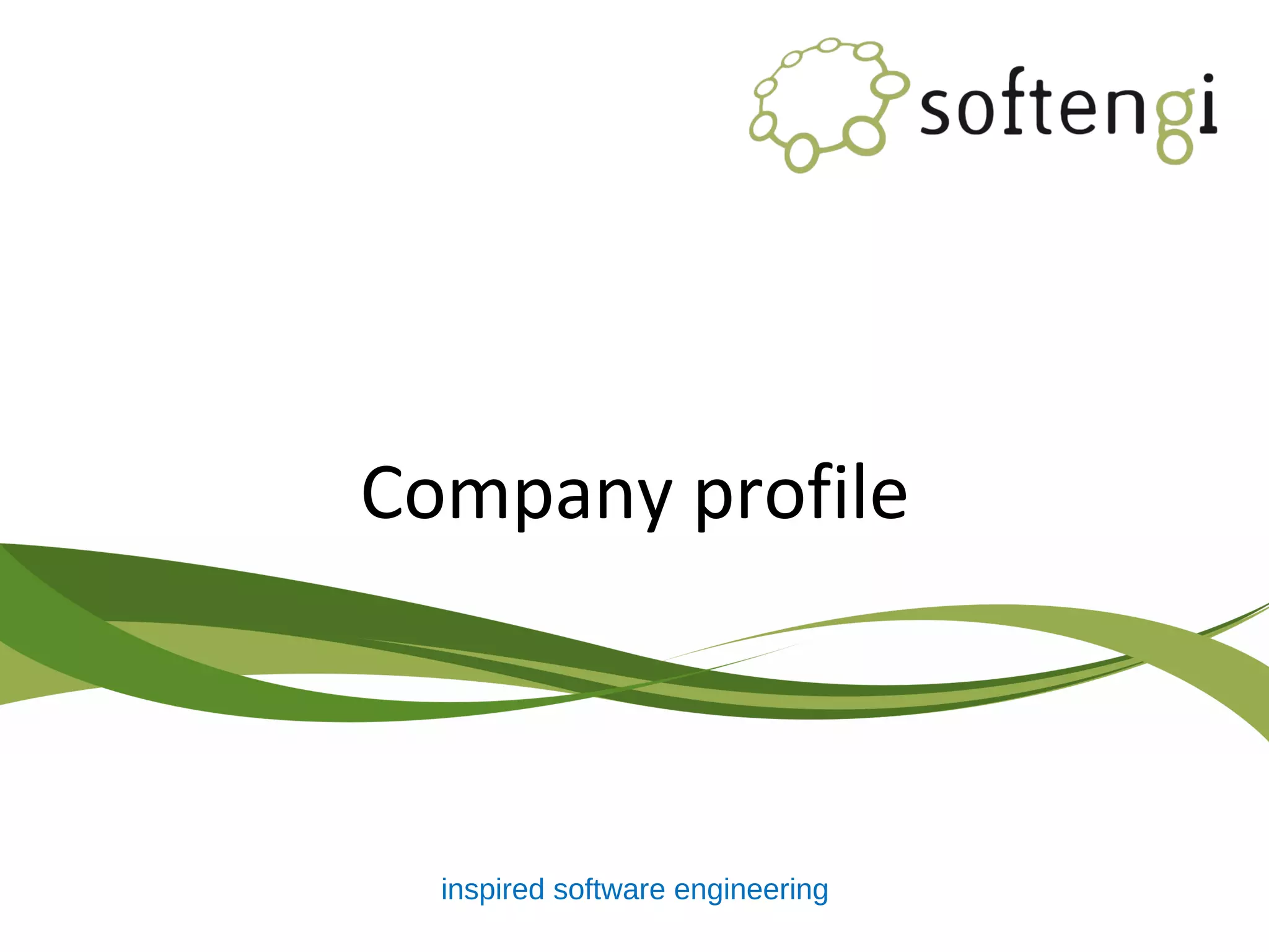 Softengi is a Ukrainian software engineering service provider with over 18 years of experience, specializing in the European and U.S. markets. It offers a range of services including software development, IT business process outsourcing, and project consulting, supported by a skilled workforce and various certifications. The company has developed large-scale projects in finance, insurance, and environmental compliance, and has partnerships with prominent clients such as Chevron and Walmart.