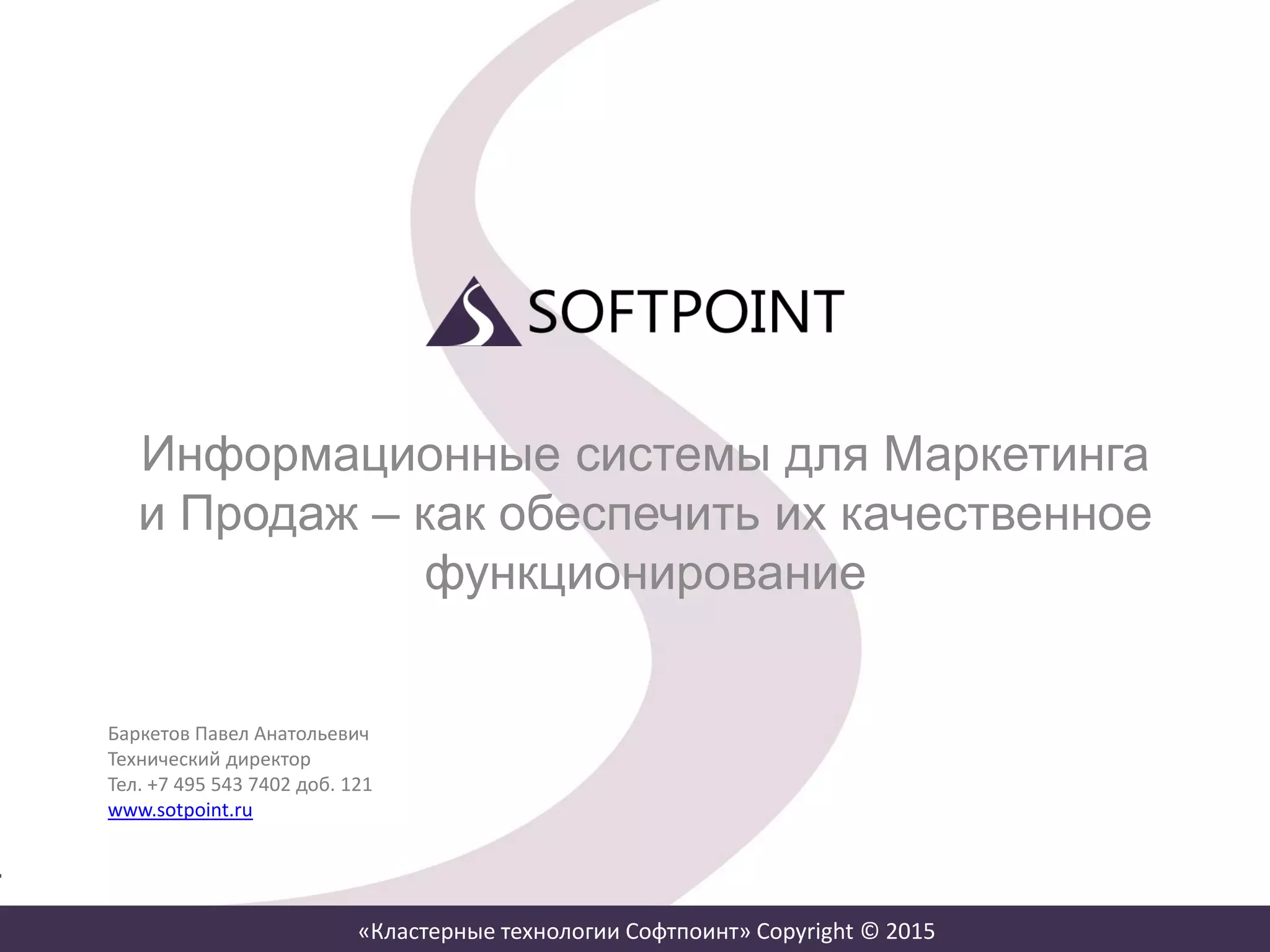 Документ описывает инновационные решения компании Softpoint, направленные на оптимизацию работы информационных систем для среднего и крупного бизнеса с помощью кластерных технологий MS SQL Server. Подробно рассматриваются преимущества использования продукта Softpoint Data Cluster, включая повышение отказоустойчивости, доступности и производительности баз данных. Результаты тестирования показывают значительное улучшение производительности при добавлении дополнительных узлов в кластер, с возможностью гибкой настройки и безопасного распределения нагрузки.