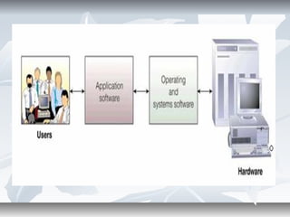 The document defines and categorizes different types of software. It discusses system software, including operating systems and utility software. It explains that operating systems control hardware, provide interfaces, manage memory and tasks. It also defines application software, including personal, workgroup, and enterprise-level applications. Overall, the document provides a comprehensive overview of the main categories and functions of different software types.