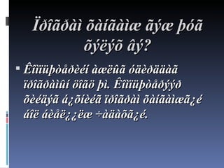 Ê îìïüþòåðèéí àæëûãóäèðääàã ïðîãðàìûí öîãö þì. Ê îìïüþòåðýýð õèéäýã á¿õíèéã ïðîãðàì õàíãàìæã¿é áîë áèåë¿¿ëæ ÷àäàõã¿é. Ï ðîãðàì õàíãàìæ ãýæ þóã õýëýõ âý? - 3.
