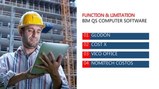 3) While BIM streamlines tasks like quantity take-off, it cannot account for all construction cost variables and may be time consuming for scheduling. Experienced teams are required to leverage its full capabilities.