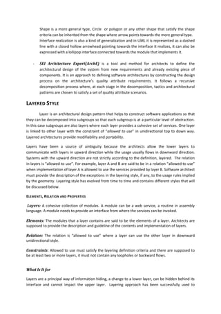 The document discusses two software architecture styles: generalization and layered.