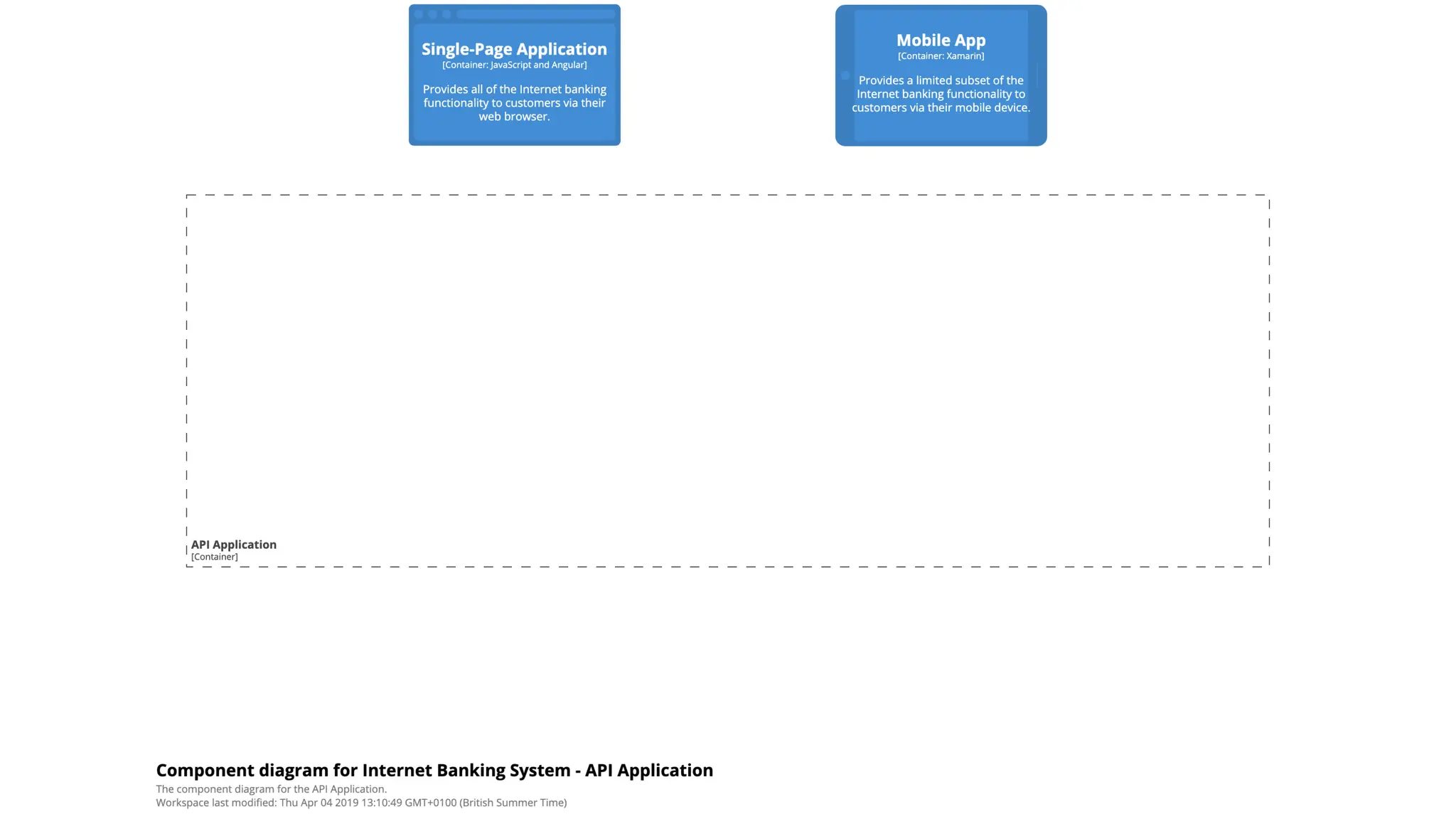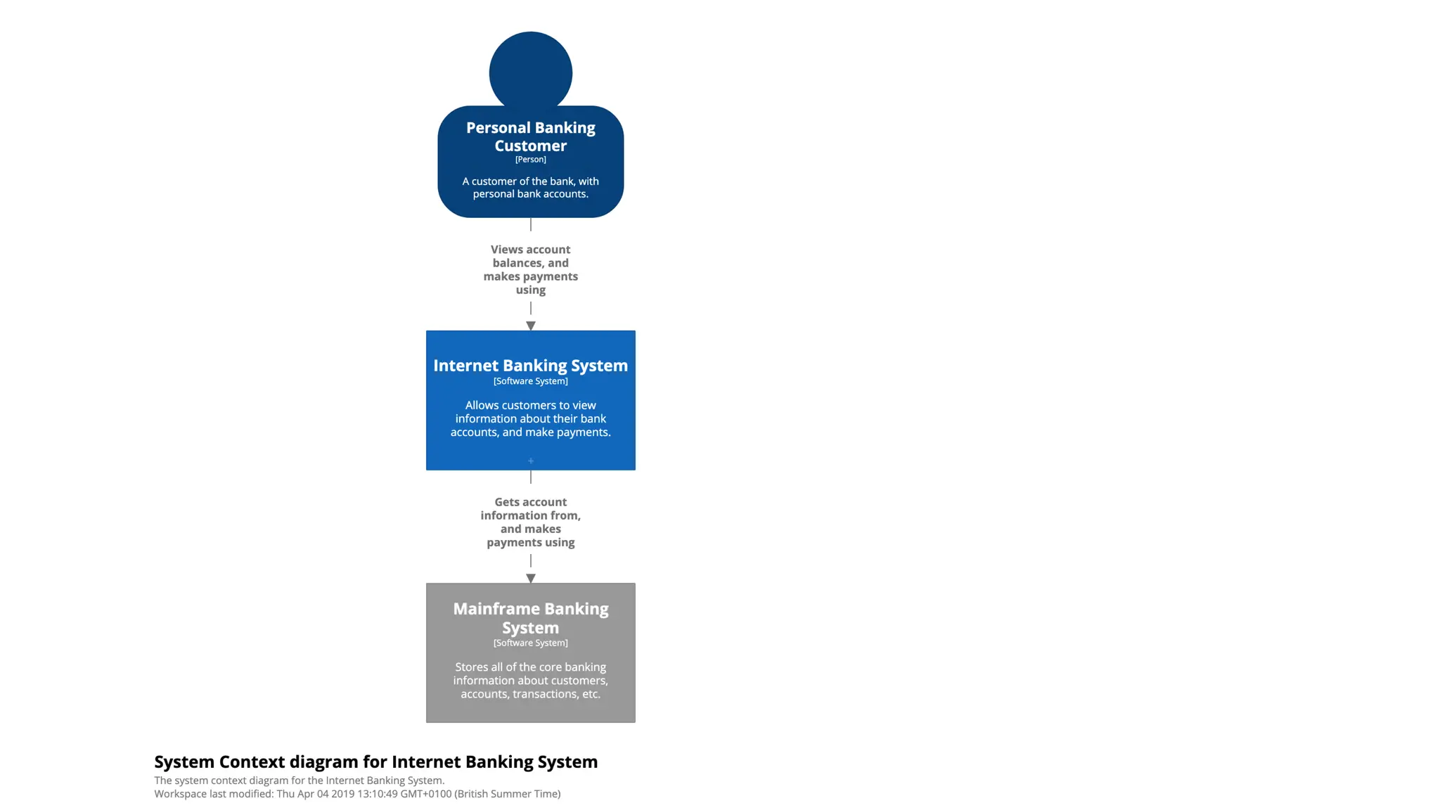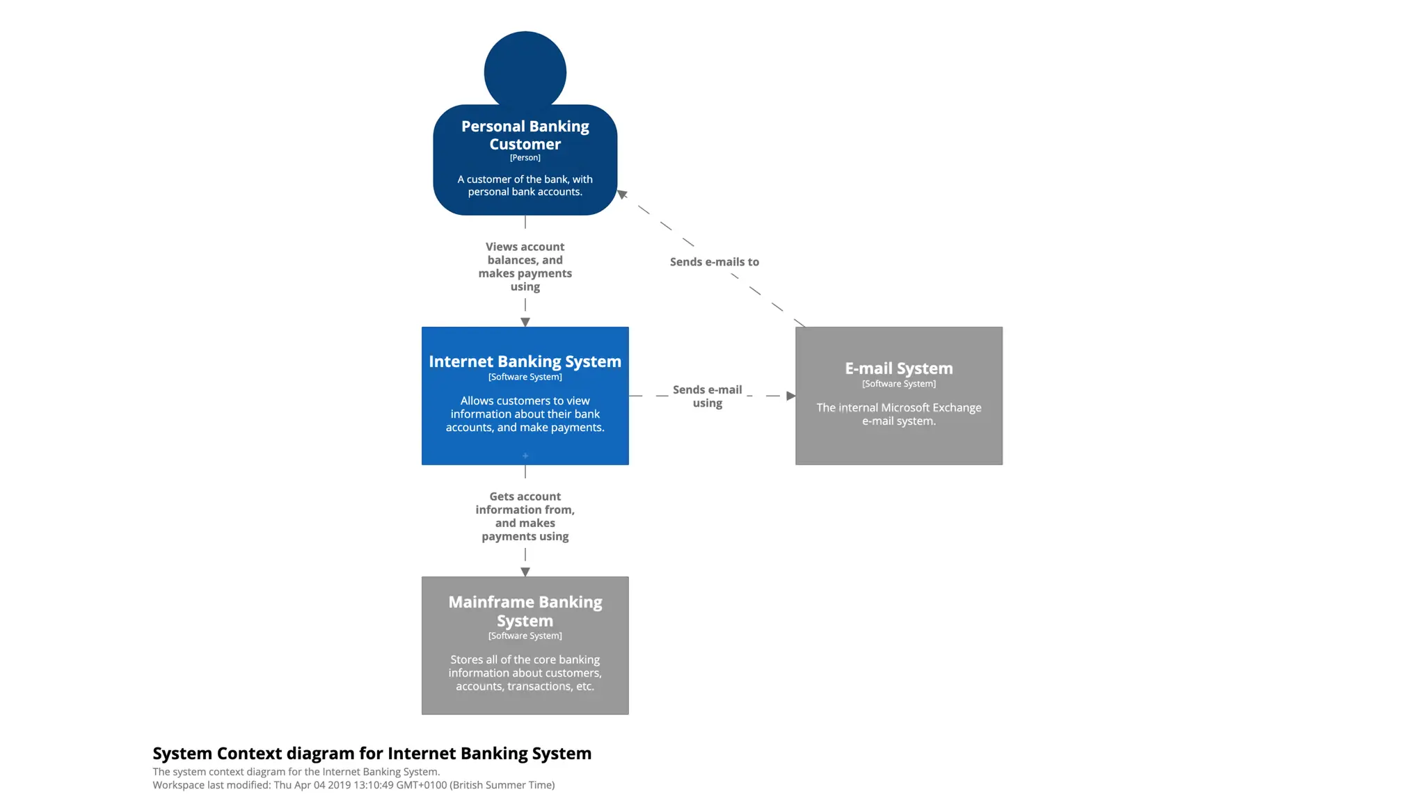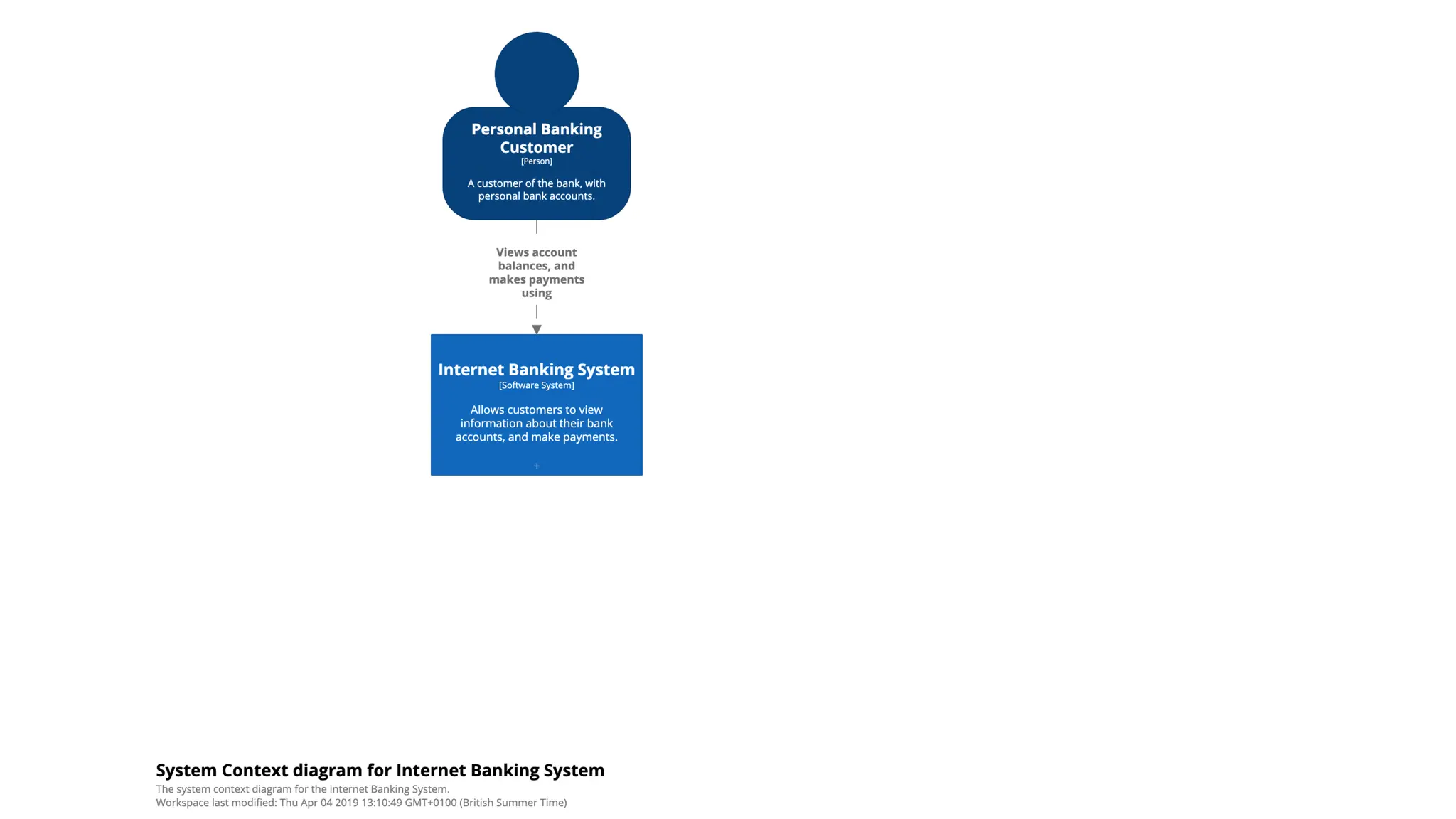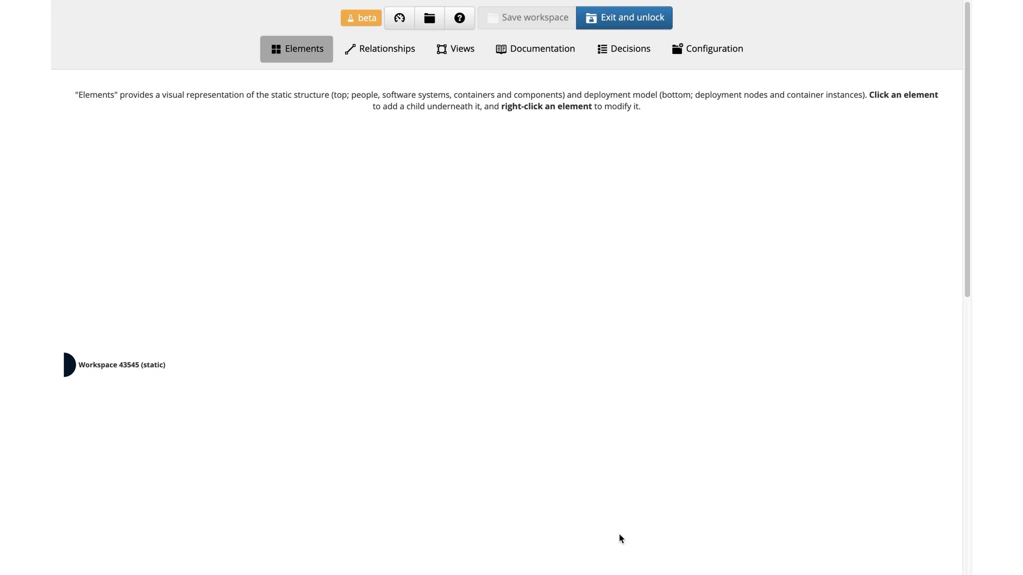 Workspace workspace = new Workspace("Getting Started", "This is a model of my software system.");