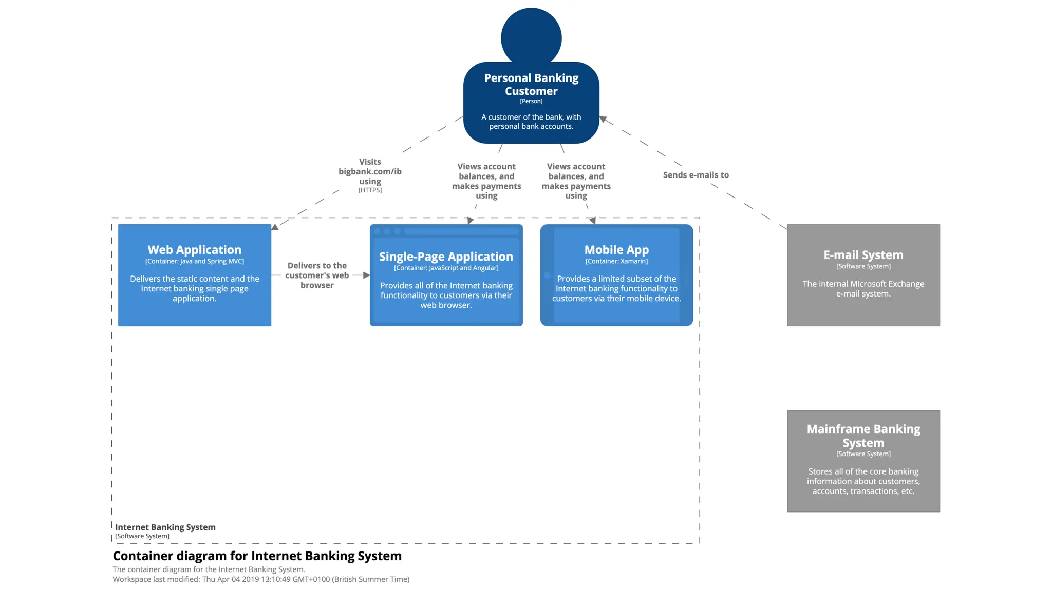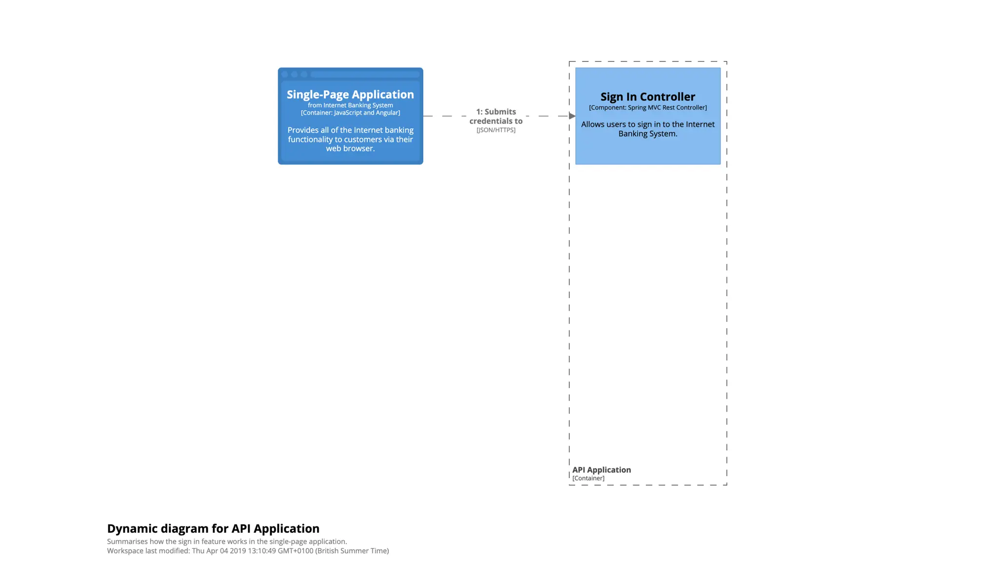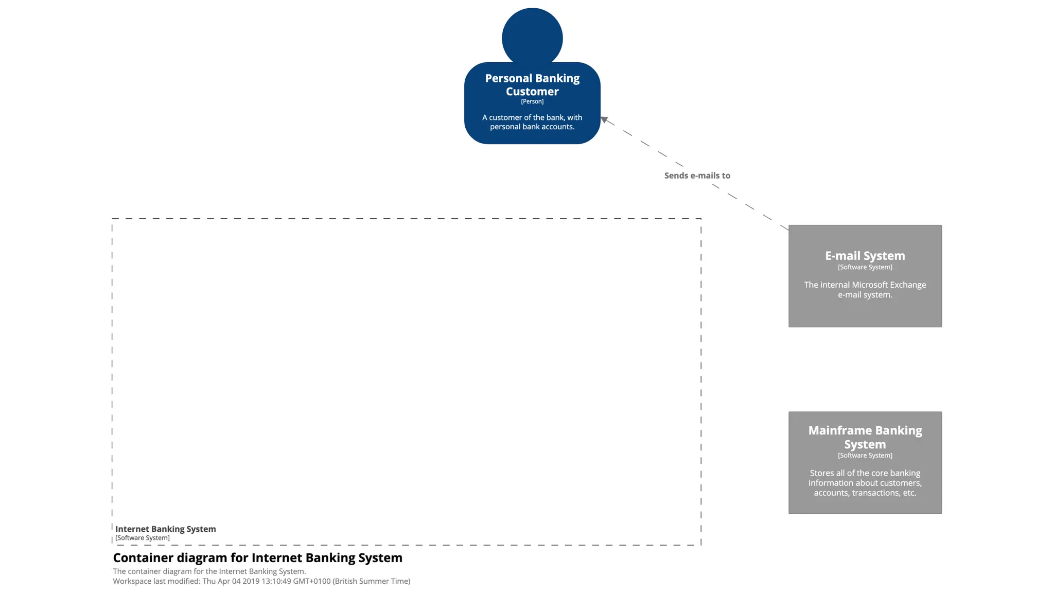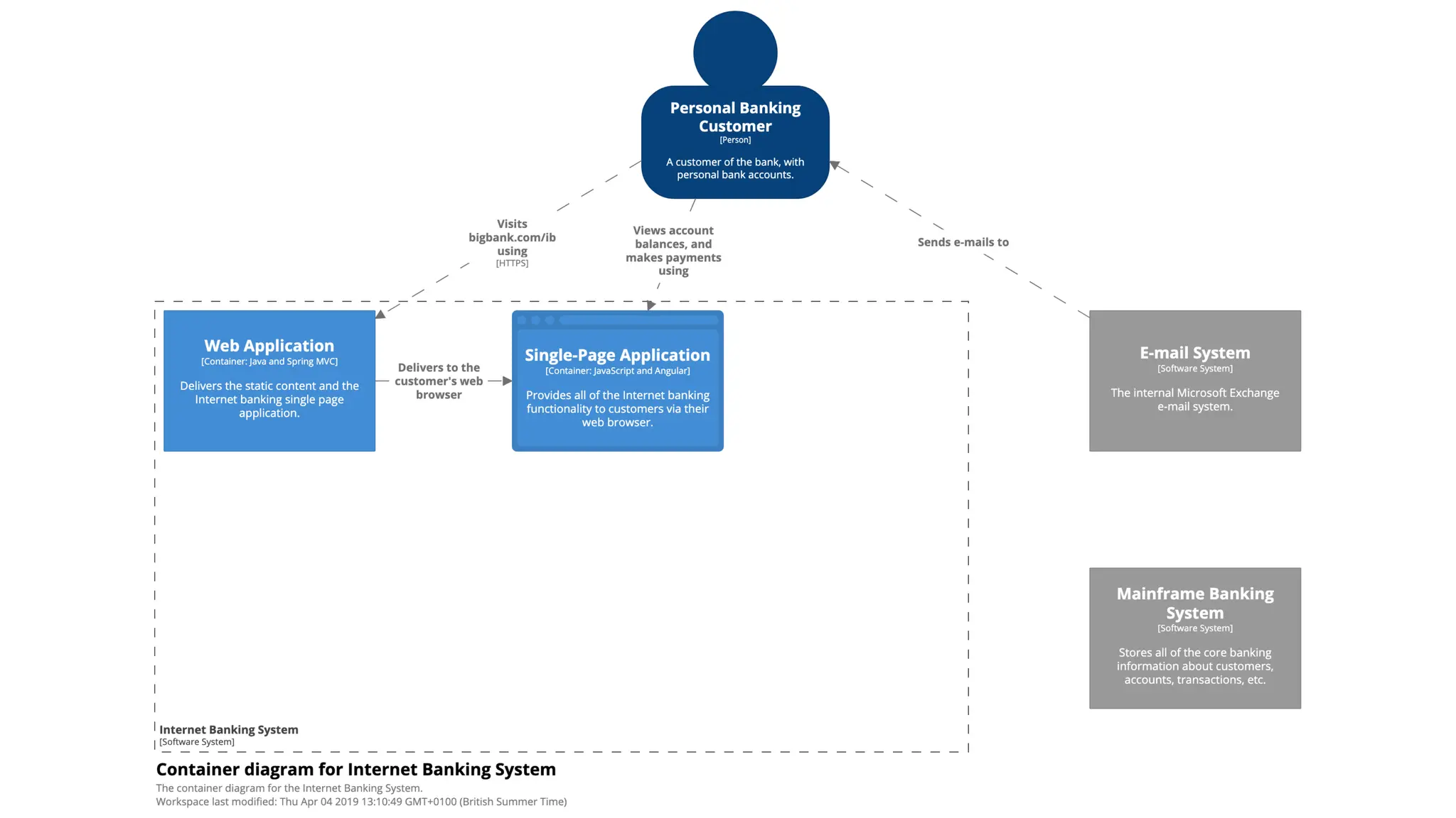 Workspace workspace = new Workspace("Getting Started", "This is a model of my software system.");