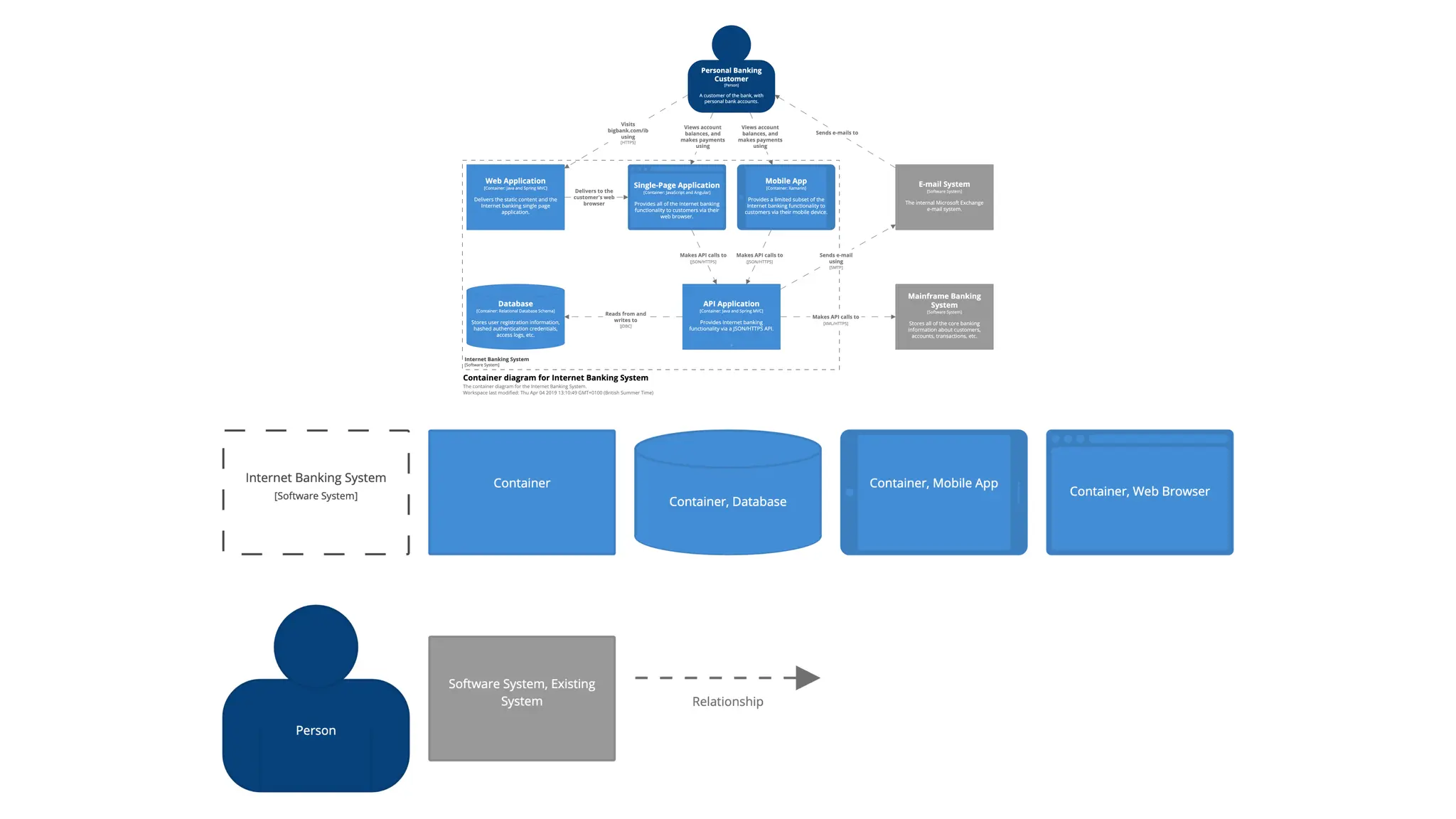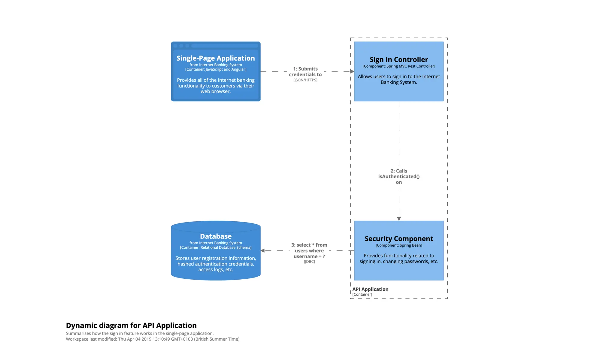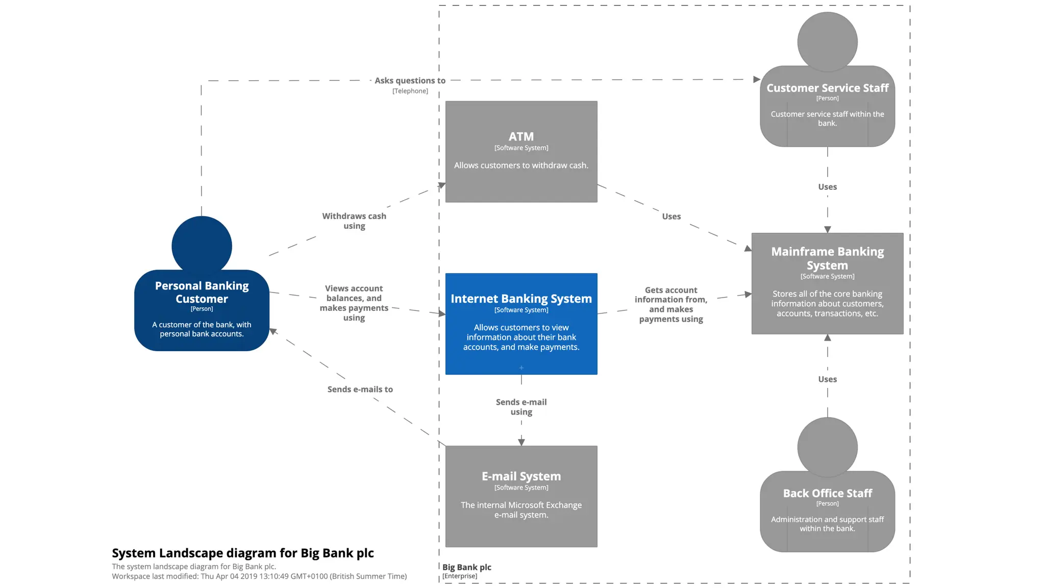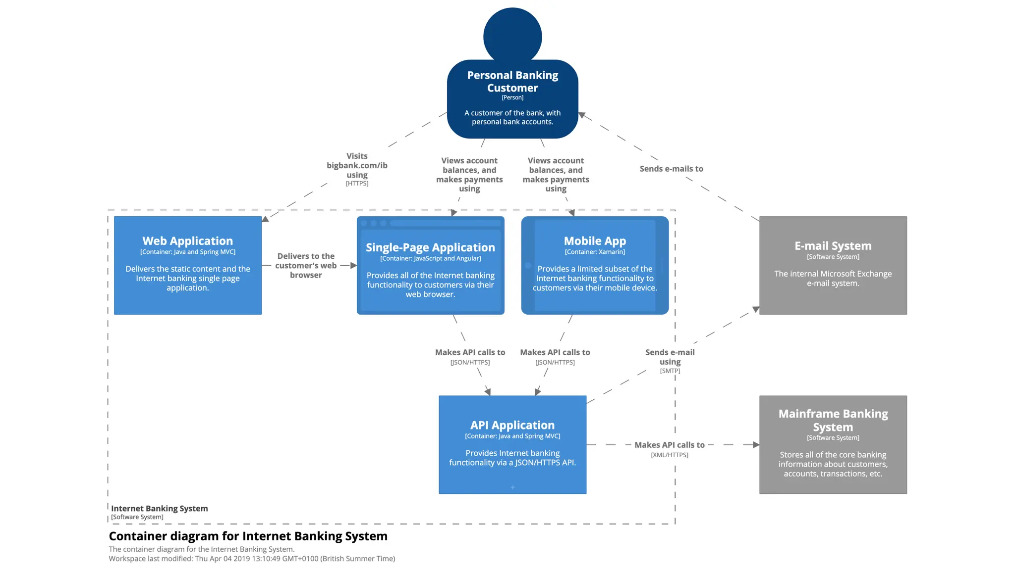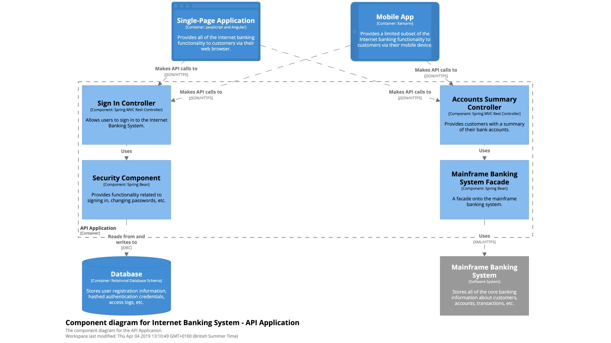 Workspace workspace = new Workspace("Getting Started", "This is a model of my software system.");