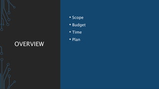 The document outlines key considerations for software architecture design, including project scope, budgeting, time management, and various design principles and patterns. It discusses methodologies like Agile and Scrum, provides insights into the roles of project and product management, and emphasizes the importance of collaboration among stakeholders. Additionally, it covers technical aspects such as language and database selection, deployment strategies, and testing types.